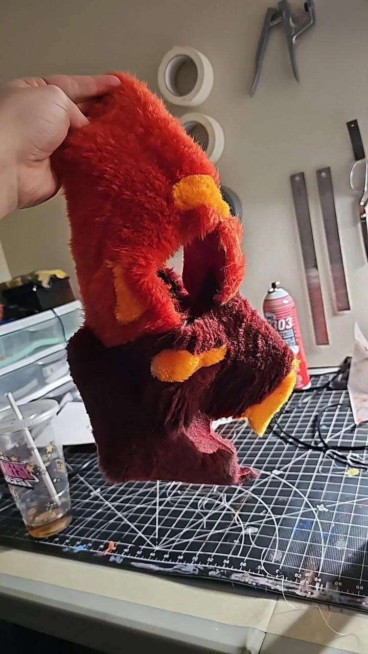 We use Howl Fabric faux fur to fur your head to completion, each ridge of the mouth being rounded off by nylon strings to give the edges of the mouth the smooth transitional feel from fur to minky!